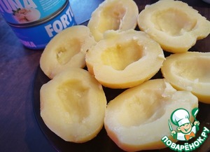 Разрезать картофель повдоль. Чайной ложкой удалить сердцевину.