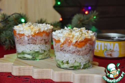 Салат с рисом и тунцом ТМ FORTUNA станет отличным вариантом закуски на новогодний стол. Рецепт простой и под силу даже новичкам в кулинарии. Интересный вкус, гармоничное сочетание ингредиентов и пикантная заправка. Пусть Новый Год подарит яркие сюрпризы, принесёт много счастливых мгновений, удачу, МИР и спокойствие в сердце.