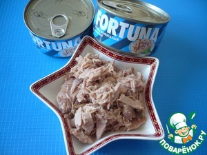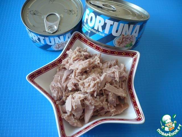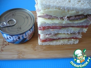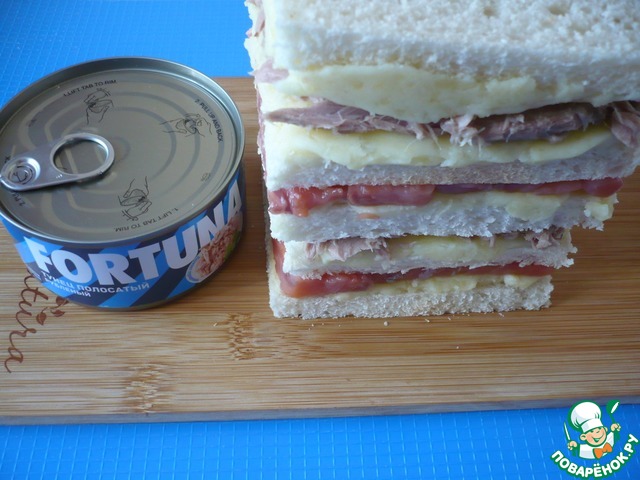 Для приготовления сэндвичей я использовала рыбные консервы тунец полосатый рубленый ТМ FORTUNA.