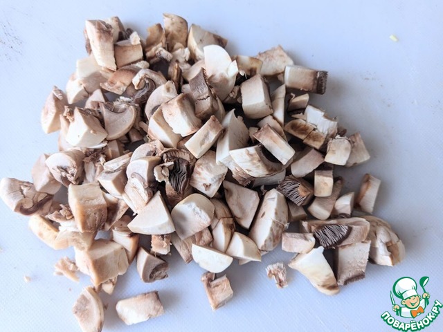 Шампиньоны моем, обсушиваем, режем кубиками.