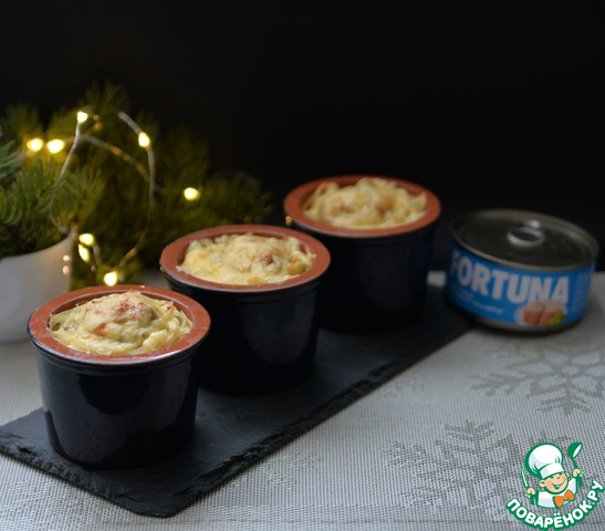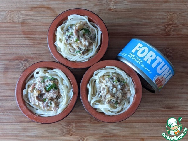Рецепт «Гнёзда, фаршированные тунцом и шампиньонами»: