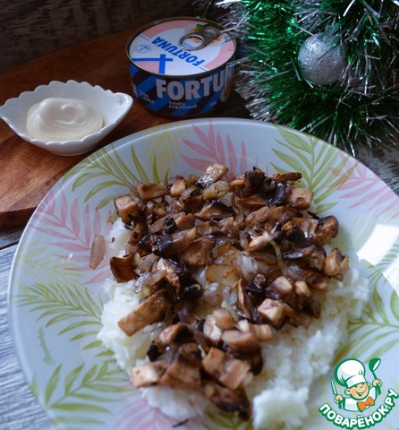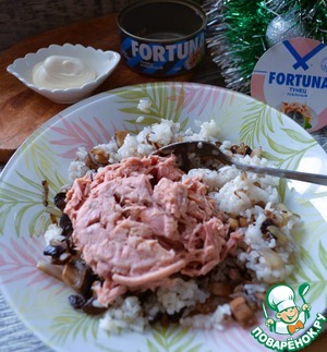 Рецепт «Рисовый салат с тунцом и шампиньонами»: