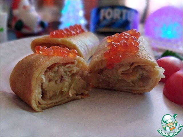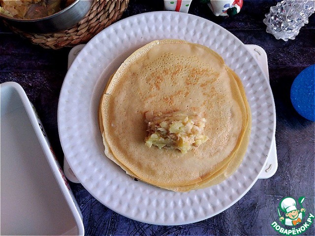 Рецепт «Блины, фаршированные картофелем с тунцом»: