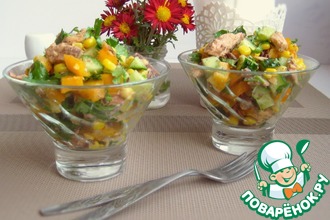 Рецепт «Легкий салат с рубленым тунцом и креветками»: