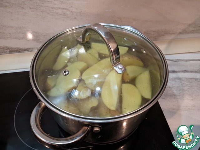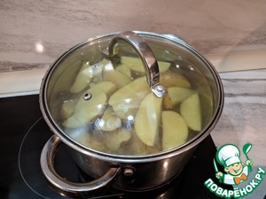 Нарезаем картофель дольками, отвариваем до полуготовности
