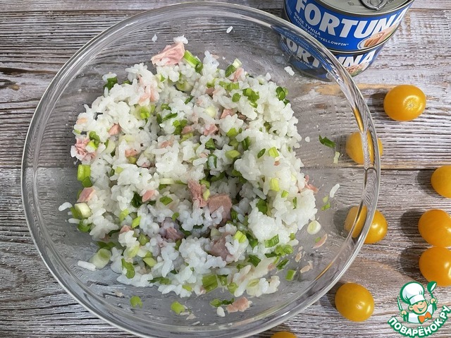 Слойки с тунцом рисом и помидорами черри