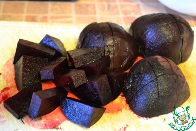 Свёклу хорошо промыть. Отварить до мягкости удобным способом. Я готовила в пароварке в течение часа. Остудить, нарезать.