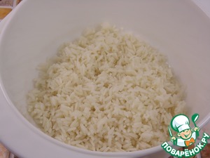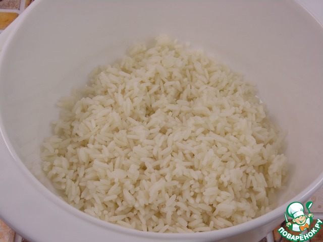 Рис отварить в кипящей подсоленной воде 20-25 минут до готовности (точное время приготовления можно найти на упаковке). Переложить в миску.