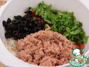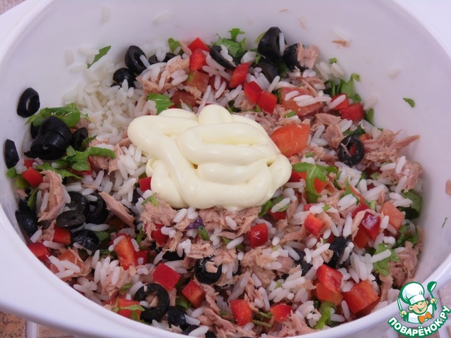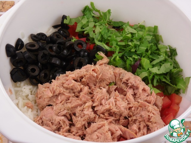 Рецепт «Салат с тунцом, рисом и овощами»:
