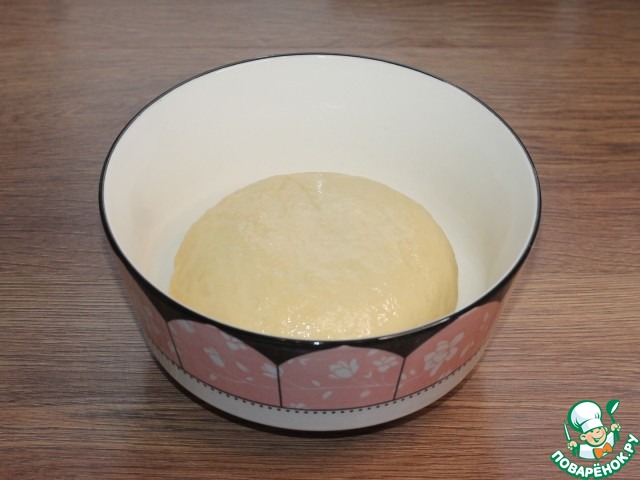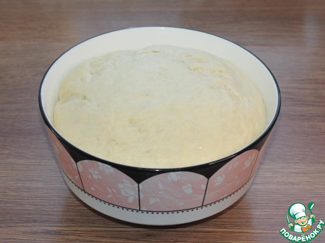 6. Тесто готово, спрыскиваем его растительным маслом со всех сторон и кладем в смазанную маслом миску. Накрываем миску пленкой и ставим в теплое место на 1-1,5 часа или до увеличения теста в 2,5 раза.
