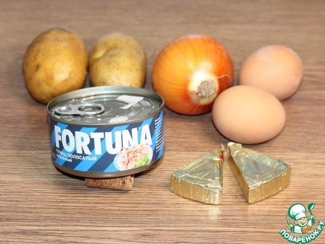 - Тунец (в соку, можно и с маслом, 185 г, FORTUNA) — 1 бан.