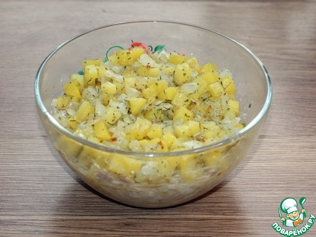 12. Затем снимаем зажарку с огня и перекладываем в миску, перемешиваем. Начинка готова!