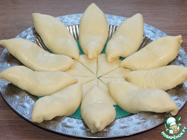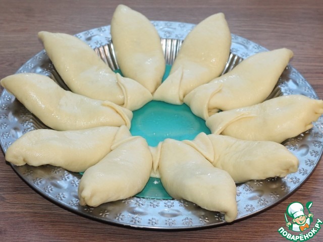 17. Соединяем края лепешки и прищипываем. Формируем пирожок.