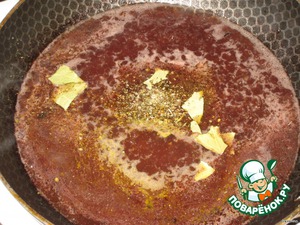 В сковороду, где обжаривались тефтельки, добавить вино и на огне чуть больше среднего продержать, пока вино не выпарится на 1/3 или половину, добавить мед, воду, добавить лавровый лист, соль, перец.