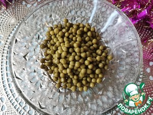 • Выложить в салатник зелёный горошек (половину стандартной банки).