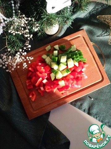 Нарезаем остальные овощи (огурец, перец, помидор).