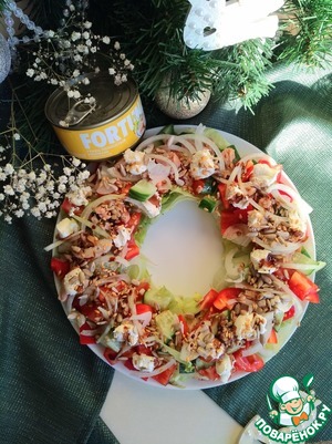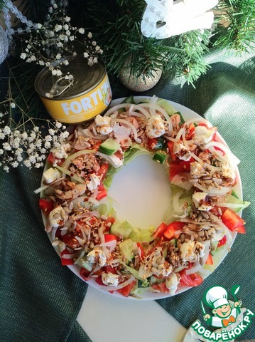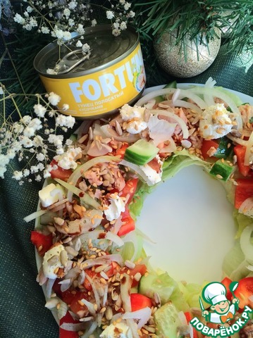 Самый добрый день! Сегодня хочу поделиться рецептом замечательного салата, он отлично подойдёт для новогоднего стола. Салат получается лёгкий, нежный, вкусный, полезный и нарядный. А что ещё нужно для праздника!?! В этом салате я использовала тунец полосатый кусочками ТМ FORTUNA.