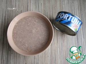 Филе тунца залейте водой, перемешайте, оставьте на 10 минут.