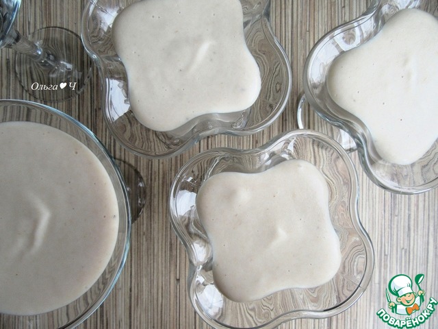 Разложите десерт по 4-5 креманкам или бокалам. Накройте пищевой пленкой или крышечками. Остудите, затем поставьте на несколько часов в холодильник.