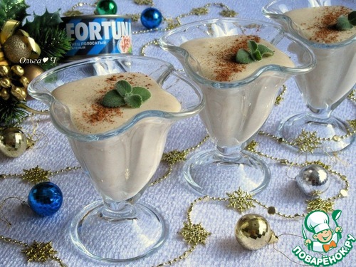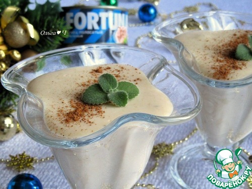 Новый год - время чудес! Да, я не ошиблась, это десерт с тунцом! А приготовлен он по мотивам знаменитого турецкого десерта Tavuk Gogsu, что в переводе на русский означает Куриная грудка, в состав которого как раз входит филе куриной грудки. Это один из самых известных деликатесов, который подавали османским султанам во дворце Топкапы. Сейчас его можно попробовать любому желающему в турецких ресторанах или приготовить у себя дома. Однажды я его готовила и мне понравилась необычная текстура и вкус этого молочного десерта. В рамках конкурса я решила приготовить подобный десерт с добавлением рубленого тунца ТМ FORTUNA. Получилось так же вкусно, нежно и оригинально. А главное, никто не угадал мастерски завуалированный ингредиент. Попробуйте! P.S.: Десерт получается в меру сладкий (я добавила 50 г сахара), низкокалорийный и с повышенным содержанием белка!
