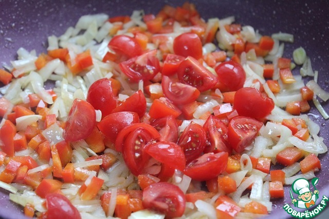 Обжарить слегка на ст л масла лук и перец.