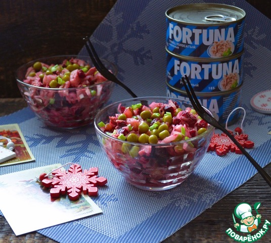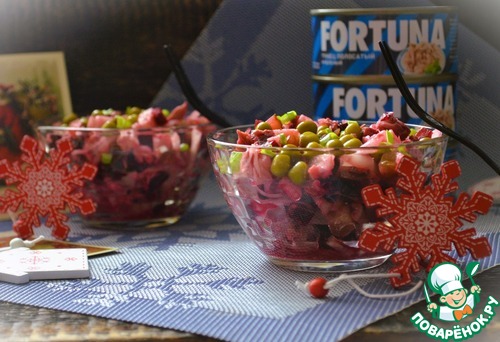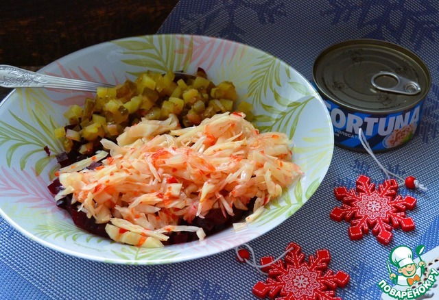 Рецепт «Винегрет с острой капустой и тунцом»:
