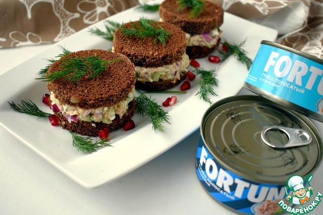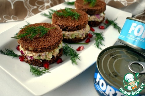 Рецепт «Бутерброды с черным хлебом и консервированным тунцом»: