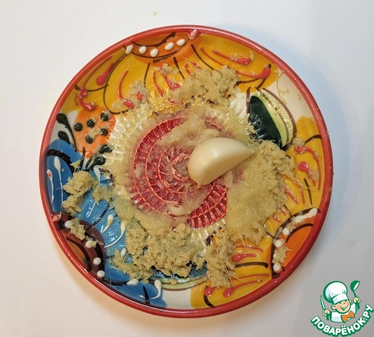 Имбирь и чеснок измельчить, я натираю на специальной тёрочке.