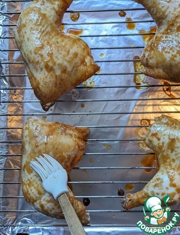 Каждые 10 минут надо смазывать курочку маринадом, смазывала 4 раза.