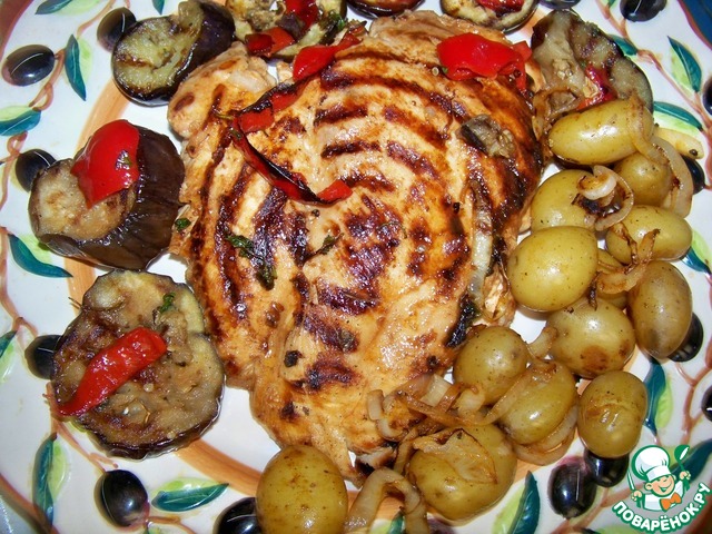 [+5]Предварительно обжарила курицу на гриль сковороде ,а затем запекала в духовке.Ах,какая вкуснятина получилась-восторг!