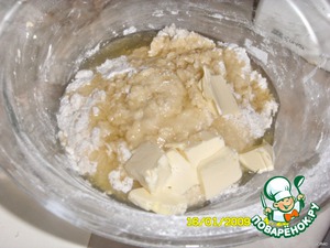 Перемешивая, добавить растительное и мягкое, но не растопленное сливочное масло.