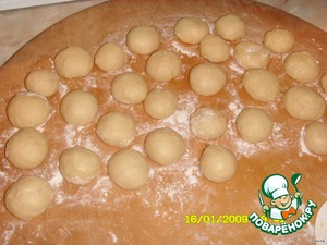 Затем разделать тесто на порции, подкатать в шарики и дать им "отдохнуть" (под пленкой).