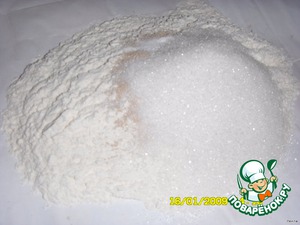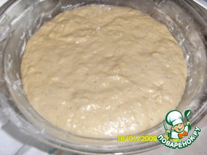 Мука+дрожжи+сахар+соль перемешать, влить молочную смесь.