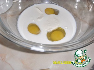 Молоко+сметана+яйца немного взбить, чтобы масса стала однородной. -