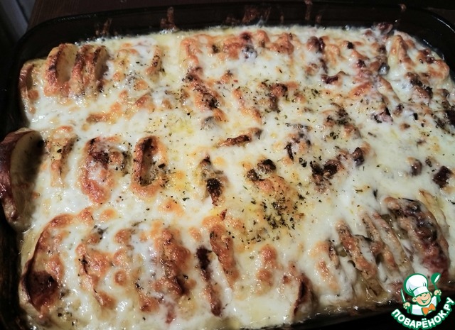 Один из вариантов картофельной запеканки, в которой картофель режется пластиками. Вкусно, сочно, ароматно