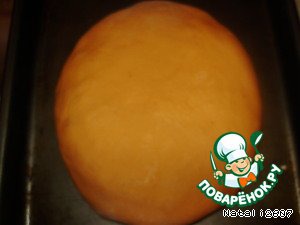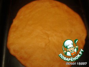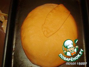 Из второй части теста раскатать круг чуть побольше, чем нижний (на сантиметра три по всему периметру).