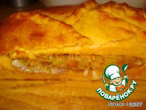 Захотелось пирога с капустой, решила испечь в таком вот виде. Может кому она и напомнит розу, но делала капусту))) Так как муж - мясоед и просто с капустой не будет кушать, пришлось добавить мясо курицы - получилось вкусненько!