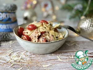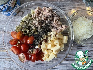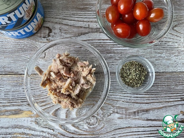 Филе тунца ТМ FORTUNA вилкой разделите на мелкие кусочки. Помидоры черри вымойте и разрежьте на половинки. Для этой пасты помидоры должны быть вкусными, сладкими и ароматными.
