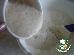 Взбить молоко с дрожжами и сахаром и дать подняться