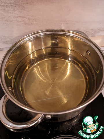 В глубокую кастрюлю, вылейте 2 литра масла, раскалите до 170 градусов.
