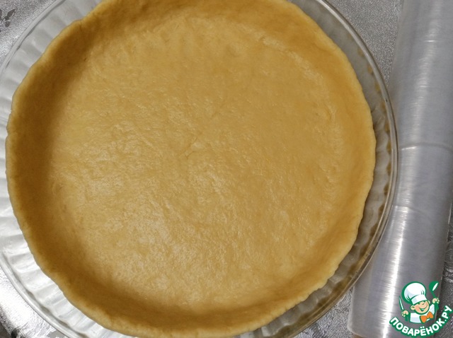 • Распределить тесто по форме, сформировать бортики. Накрыть пищевой плëнкой и убрать в холодильник на полчаса.