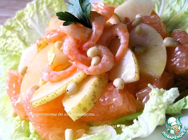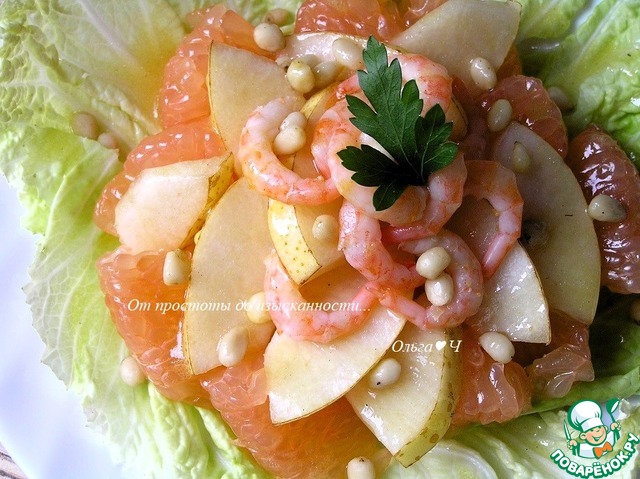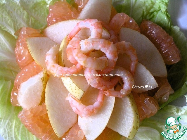 Легкий, быстрый и сочный салат с креветками, грушей и грейпфрутом доставит вам массу удовольствия и не повредит фигуре. Попробуйте!