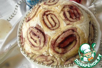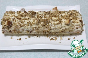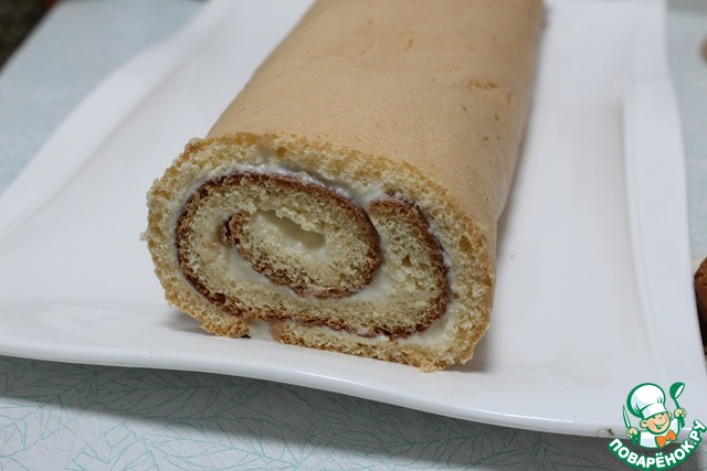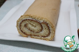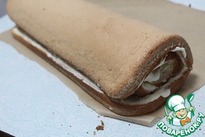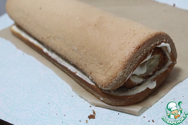 Кладем рулет на вторую половину и скручиваем в рулет.