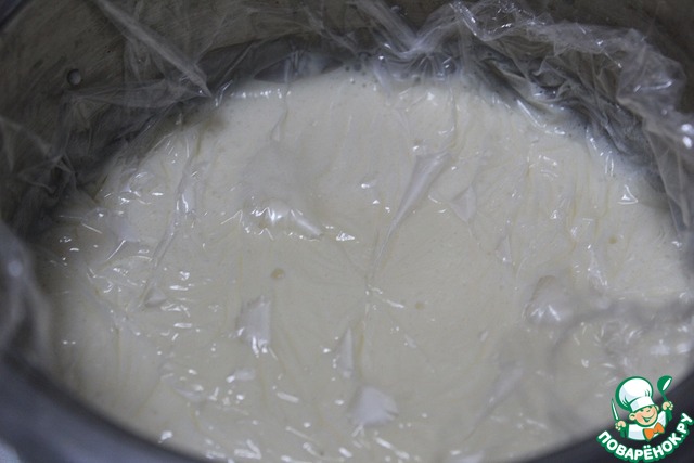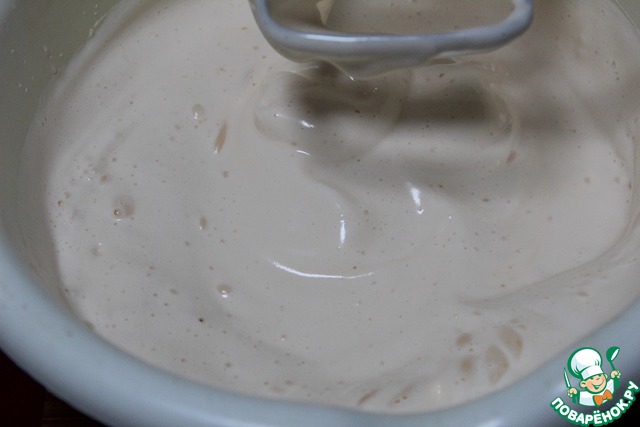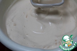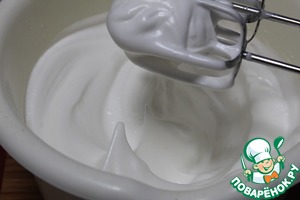 Миксером взбить белки до пены и постепенно добавлять по- немногу сахар, не переставая взбивать.