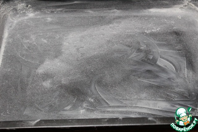 Противень смазать сливочным маслом и обсыпать мукой - излишки муки стряхнуть - французская рубашка