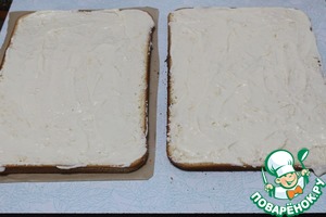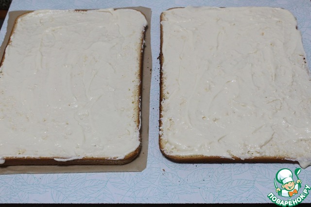 Нанести крем на обе половинки, оставив часть на оформление. -