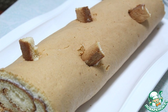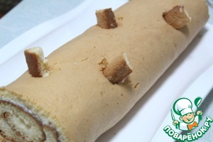 Из обрезков делаем небольшие палочки и втыкаем в рулет - это сучки.