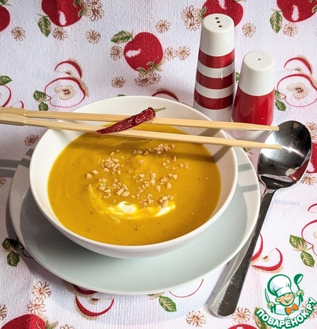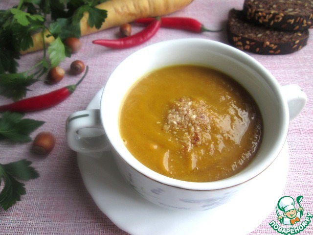 Готовила маленькую порцию, взяла по штуке пастернака и моркови. Остальные добавки, кроме арахисовой пасты, по рецепту. Добавляла измельченные лесные орехи. У супа-пюре очень интересный пряный, сладковатый вкус. Мне понравился такой вариант, конечно, теперь буду пробовать и с арахисом. Нелличка, спасибо большое за рецепт!