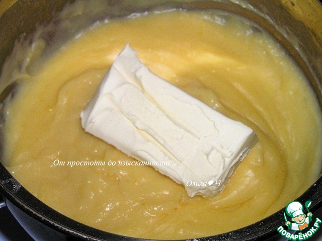 Снимите кастрюльку с огня, немного остудите и добавьте сливочное масло.