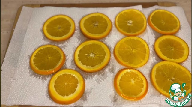 После остывания, апельсины выкладываем на бумажное полотенце и просушиваем их.